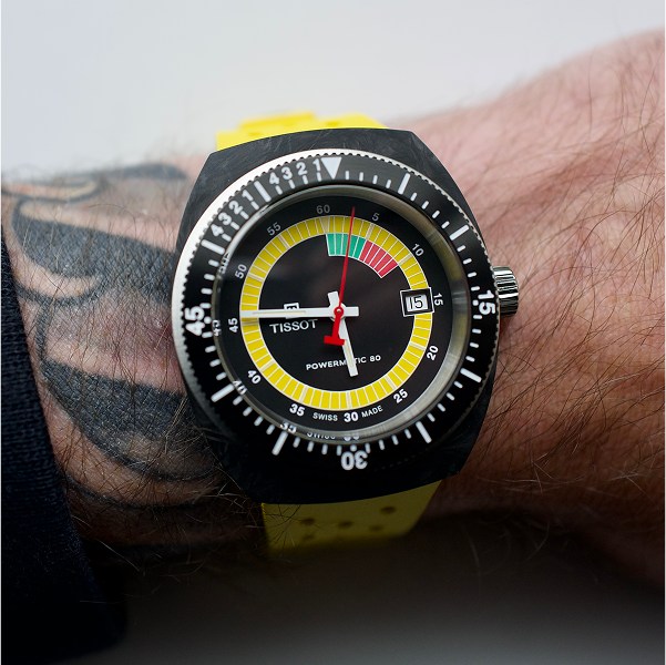 - 316L stainless steel case with black and grey marbled forged carbon
